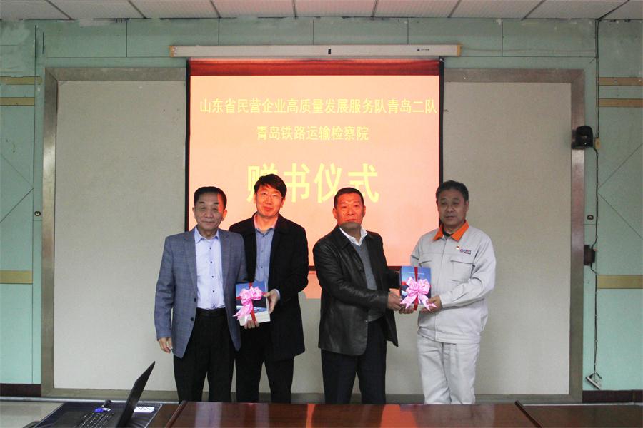 省民營企業(yè)高質(zhì)量發(fā)展服務(wù)隊(duì)和青島鐵路運(yùn)輸檢察院的各位領(lǐng)導(dǎo)參觀了科技文化館、智能化生產(chǎn)車間和信息化系統(tǒng)管理平臺,對我公司在全面落實(shí)疫情防控和復(fù)工復(fù)產(chǎn)等方面的做法給予充分肯定。最后,在公司培訓(xùn)中心進(jìn)行了座談,共同探討今后高質(zhì)量發(fā)展服務(wù)相關(guān)工作的重點(diǎn)和方向,并舉行了贈(zèng)書儀式和防疫物資捐贈(zèng)儀式。